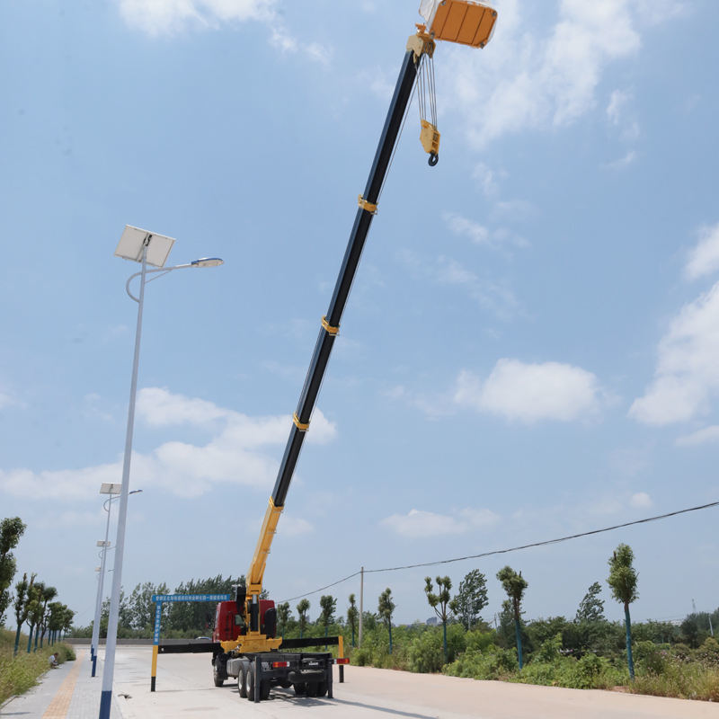 Um guindaste de elevação é geralmente montado em caminhões de carga e usa sistemas de elevação hidráulica e telescópicos para realizar o levantamento, viração e elevação de mercadorias.Os guindastes montados em caminhões são amplamente utilizados para levantar e transportar materiais de infraestrutura, como construção municipal, engenharia de mineração de carvão e paisagismo.